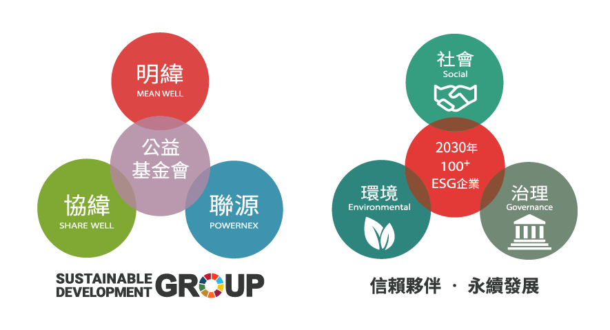 在大量閱讀永續發展的文章后,我開始形塑出明緯的未來,可以結合聯合國永續發展目標,以SDG (Sustainable Development Group)為概念,建構以明緯、聯源、協緯、公益基金會為一體的SDG集團,以「信賴伙伴 永續發展」為企業標語,培育更多的ESG(Environmental, Social, Governance)企業。